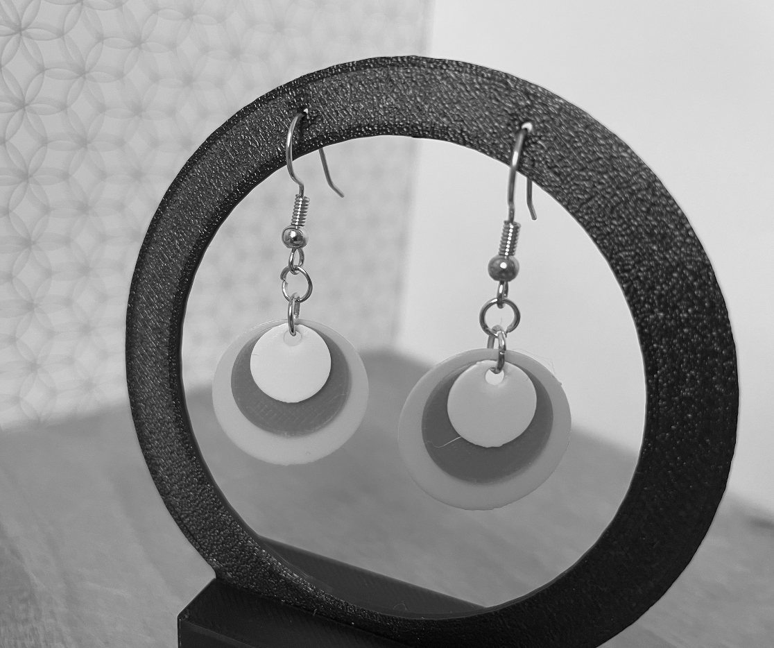 De oorbellen zijn ca 4 cm lang. Ze zijn gemaakt van plastic daarmee zijn ze licht van gewicht, ze hebben een groot draagcomfort.
